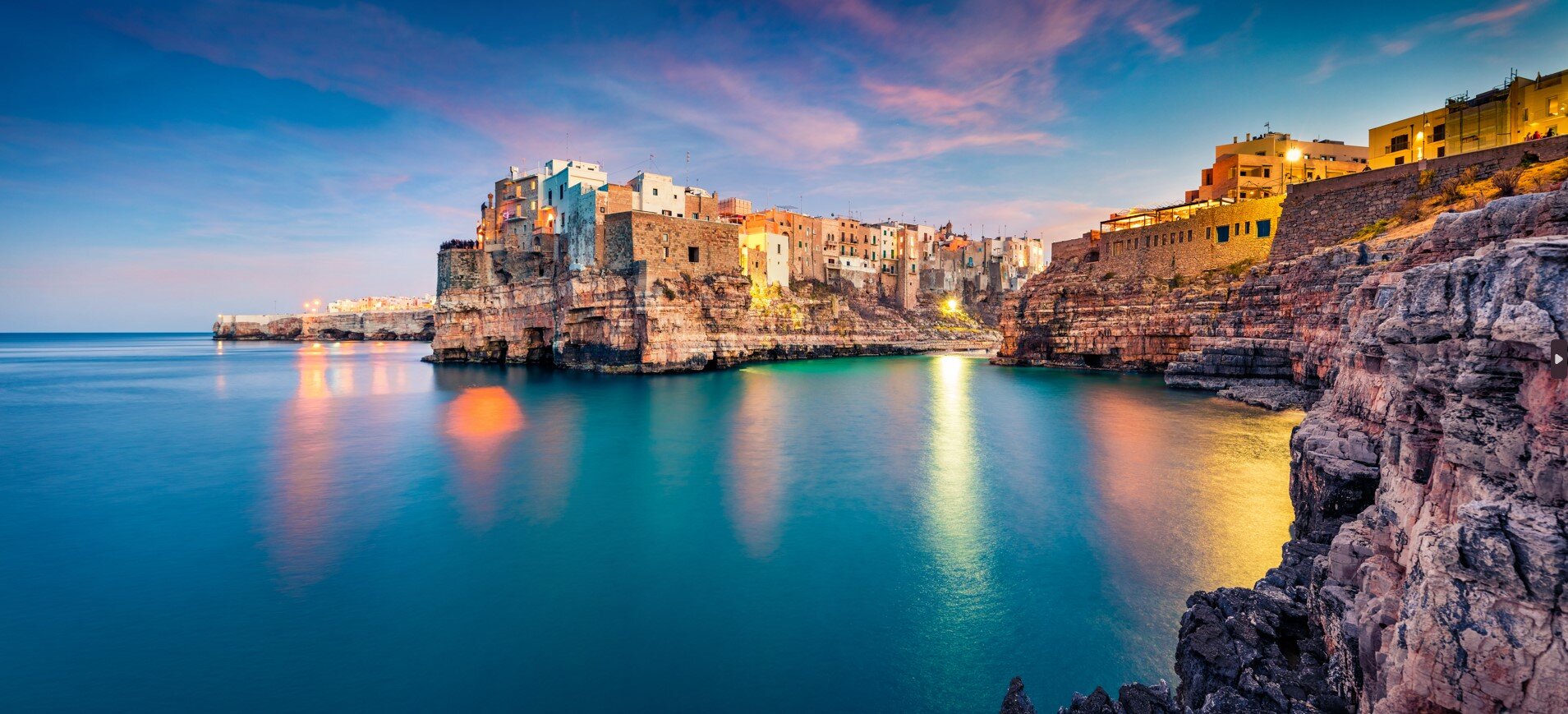 Boasting around 800km of dreamy coastline, it comes as no shock that Puglia’s beaches are some of the best in Italy. Enjoy pristine stretches of sand on the Ionian and Adriatic coasts, beautifully clean and unspoiled. Gaze upon stunning coastal scenery in the north, where wooded hills melt into white cliffs, coves and crystalline waters. Or head south to Polignano a Mare and Monopoli, where lovely sandy spots stand out among the dramatic rocky coast.