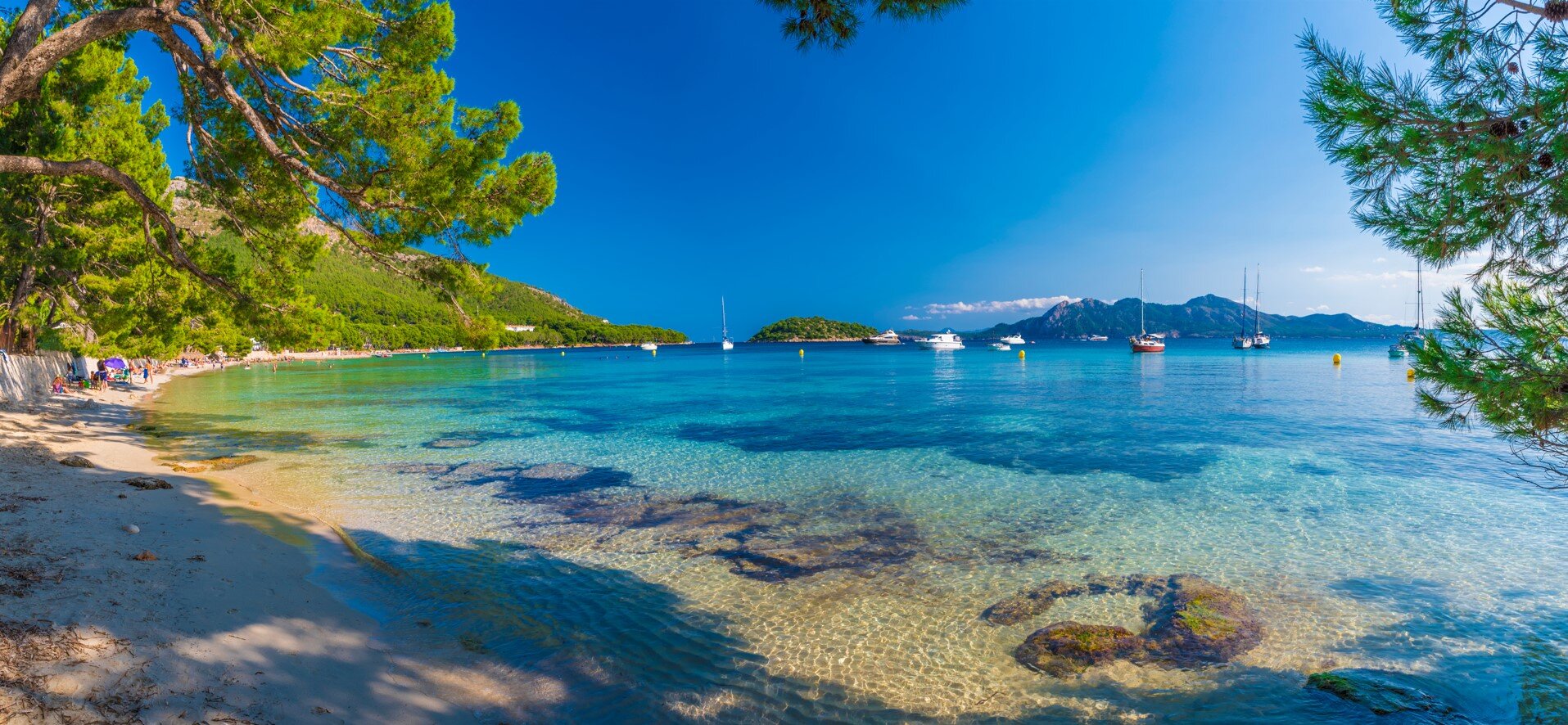 Set at the base of a lush pine forest, Cala Formentor is one of the hottest swim-spots in North Mallorca. This crescent-shaped beach boasts warm, crystalline waters, a sand and pebble shore and areas of natural shade for cooling off. The beach is fairly small so can get busy around midday; make sure to get there early to secure a good spot.