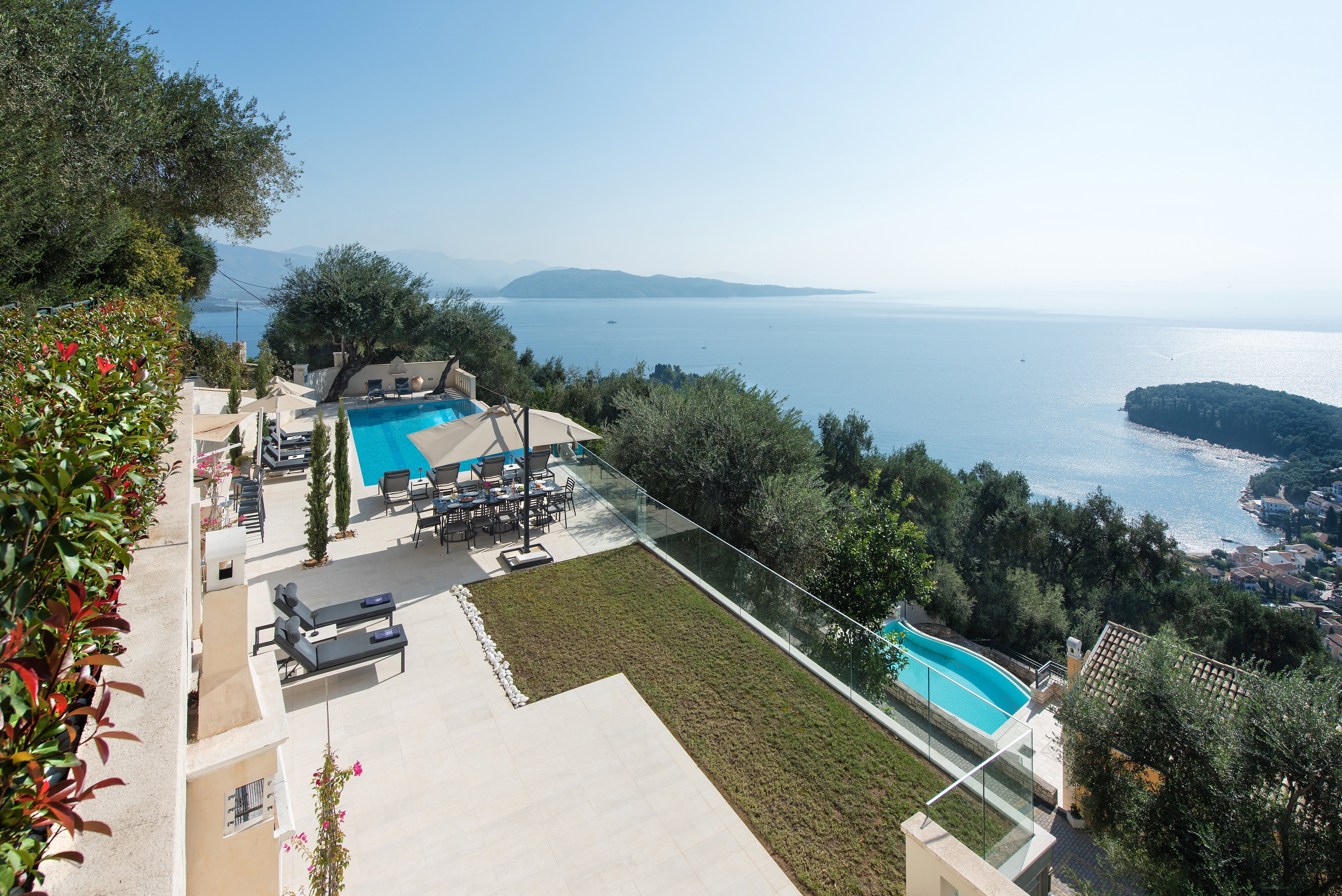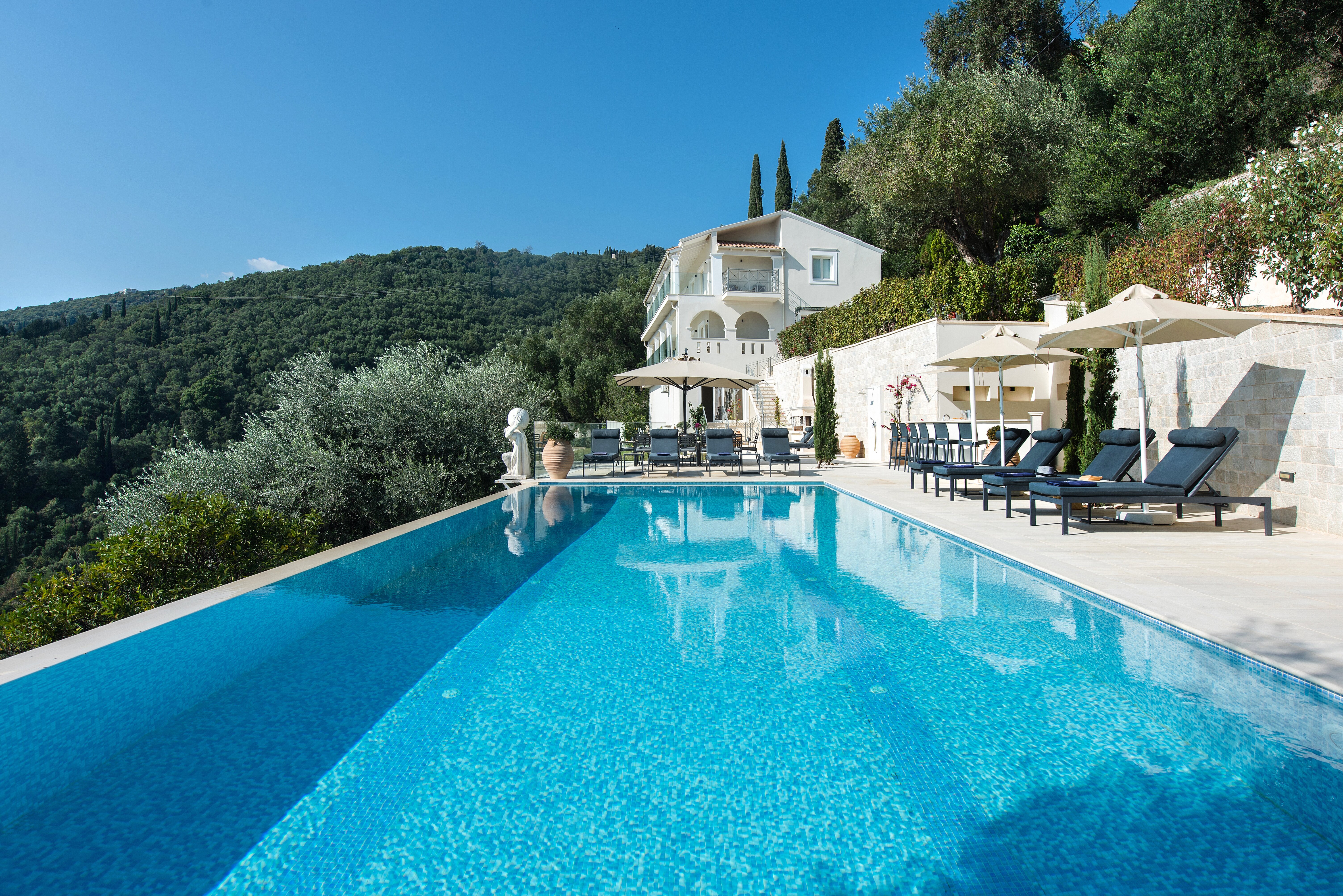 Diese familienfreundliche Villa auf Korfu mit atemberaubendem Blick vom großen Infinity-Pool befindet sich in einer idyllischen Umgebung für diejenigen, die dem Alltag entfliehen möchten.