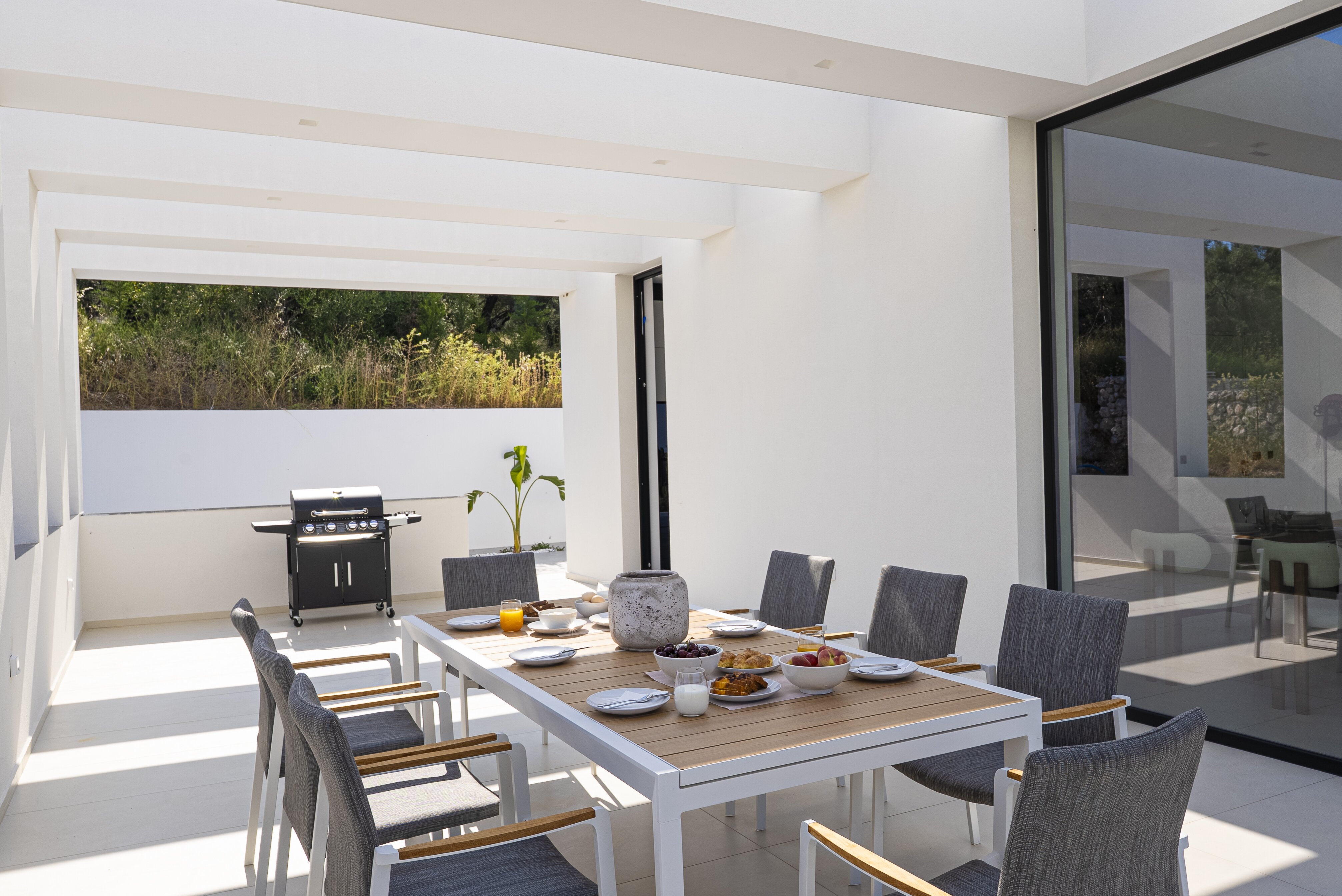 Otos ist eine moderne und elegante Villa, die auf Komfort, Stil und Privatsphäre ausgelegt ist. Deren Villa verfügt über drei geräumige Schlafzimmer, jedes mit eigenem Bad, und bietet Platz für bis zu sechs Gäste in absolutem Komfort. Der offene Wohn- und Essbereich ist hell und einladend, mit einer voll ausgestatteten Küche, die das gemeinsame Essen zum Kinderspiel macht, egal ob Sie ein gemütliches Frühstück zubereiten oder einen entspannten Abend verbringen.