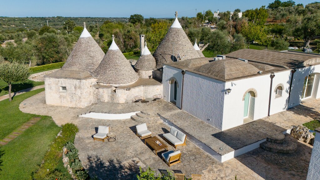 Mit einer Ansammlung von fünf Trulli-Kegeln, die das Haupthaus bilden, und einem modernen Nebengebäude mit vier Schlafzimmern direkt unterhalb der Poolterrasse ist diese entzückende Villa perfekt...