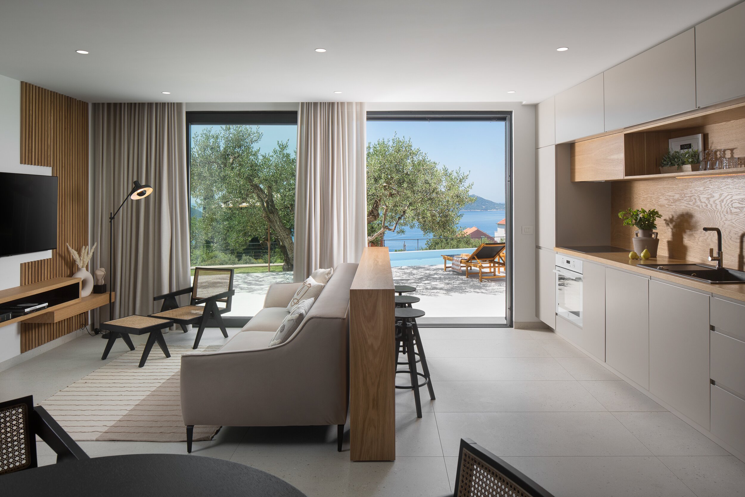 Diese neu erbaute Villa befindet sich über Dubrovnik und bietet herrlichen Meerblick, stilvolle moderne Möbel und einen beheizbaren Infinity-Pool.
