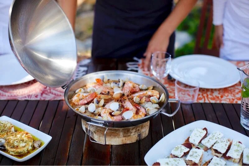 Alle unsere Villen an der Algarve verfügen über gut ausgestattete Küchen. Wenn Sie also Lust auf eine gemütliche Nacht haben, gibt es in den größeren Ferienorten Supermärkte für ein leckeres Abendessen, das von den Villen zubereitet wird. Wenn es ein besonderer Anlass ist (oder Sie einfach keine Lust haben, die Arbeit selbst zu erledigen), könnten Sie sich jederzeit für eine unserer luxuriösen ABOVE Villen entscheiden und den Kochservice inklusive haben. Oder, wenn Sie kein Budget haben und Lust auf etwas haben, warum probieren Sie nicht eines der Michelin-Restaurants der Region aus – die mit zwei Sternen ausgezeichnete Vila Joya ist einer unserer Favoriten und vereint herausragende Gerichte mit einem ernsthaften Blick auf das Meer.