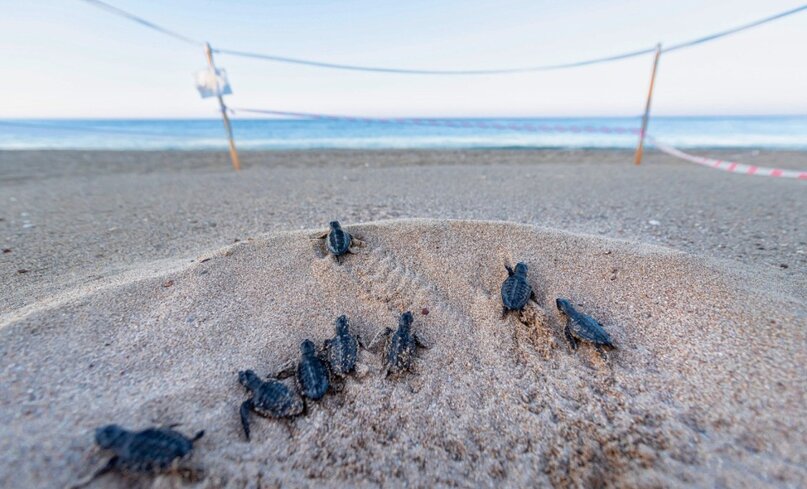 Turkiye's Mediterranean coast is a nesting ground for endangered loggerhead and green sea turtles, as well as a mecca for tourists who can unwittingly disturb the egg-laying and hatching process with noise, lights, parasols and foot traffic. The DEKAFOK organisation monitors and protects turtle eggs and hatchlings on Titreyengol Beach, where up to 400,000 tourists descend during peak summer nesting season.