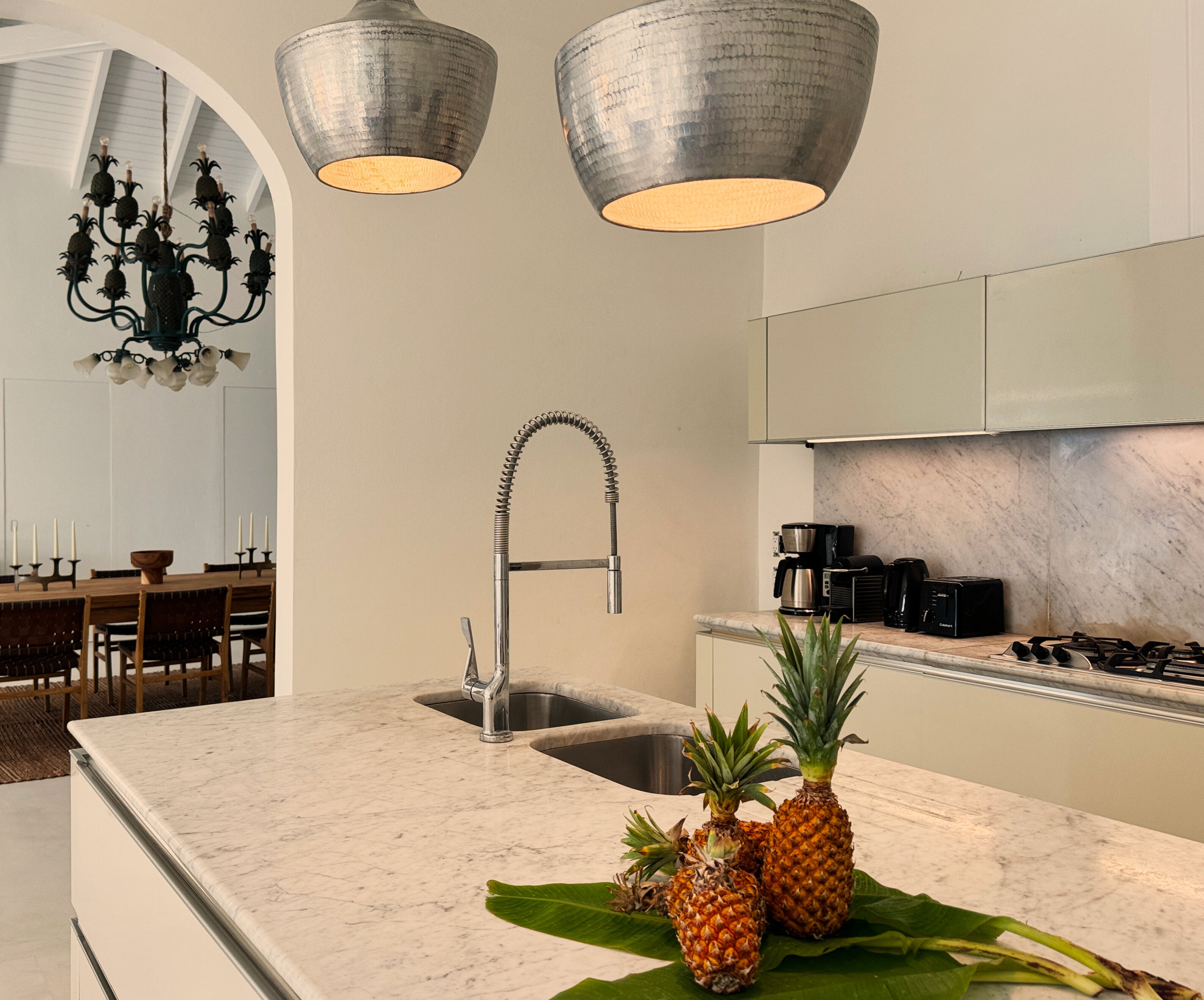 - Open plan living/dining and kitchen area opening onto pool terrace