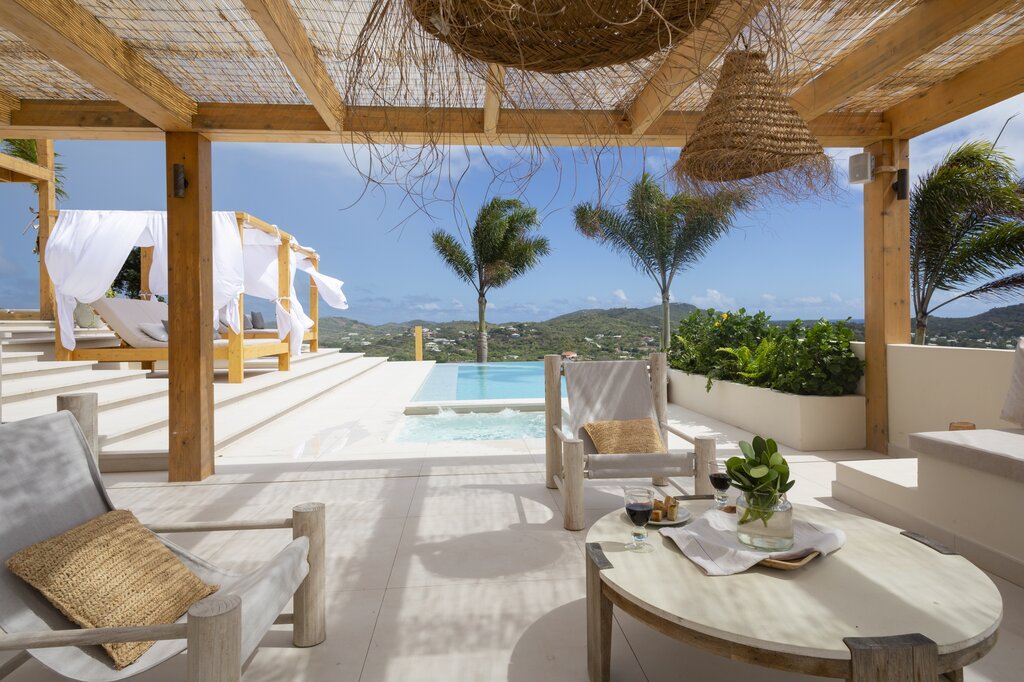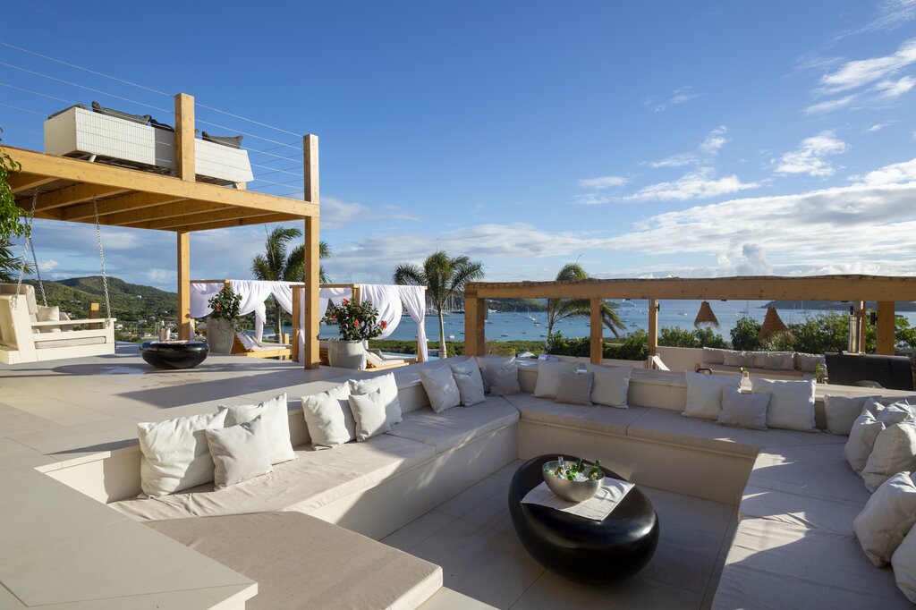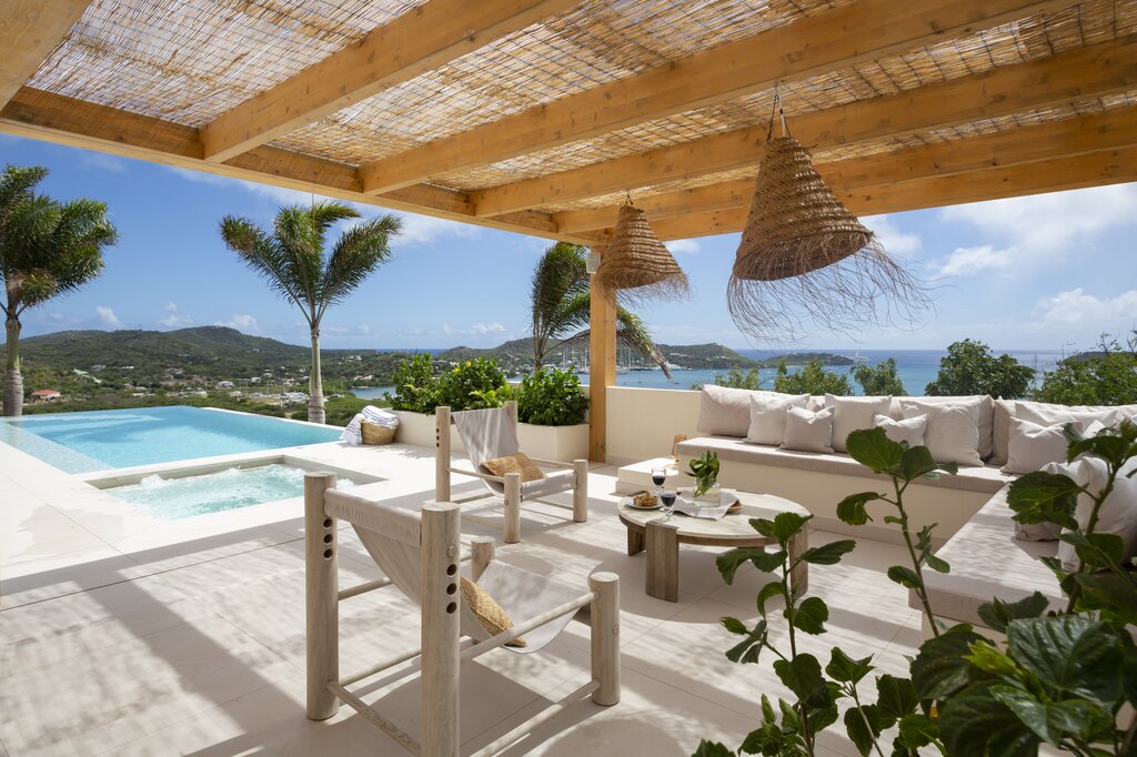 A masterclass in modern Caribbean living, this former music producer’s retreat offers panoramic harbor views, creative soul, and seamless indoor-outdoor spaces for large groups.