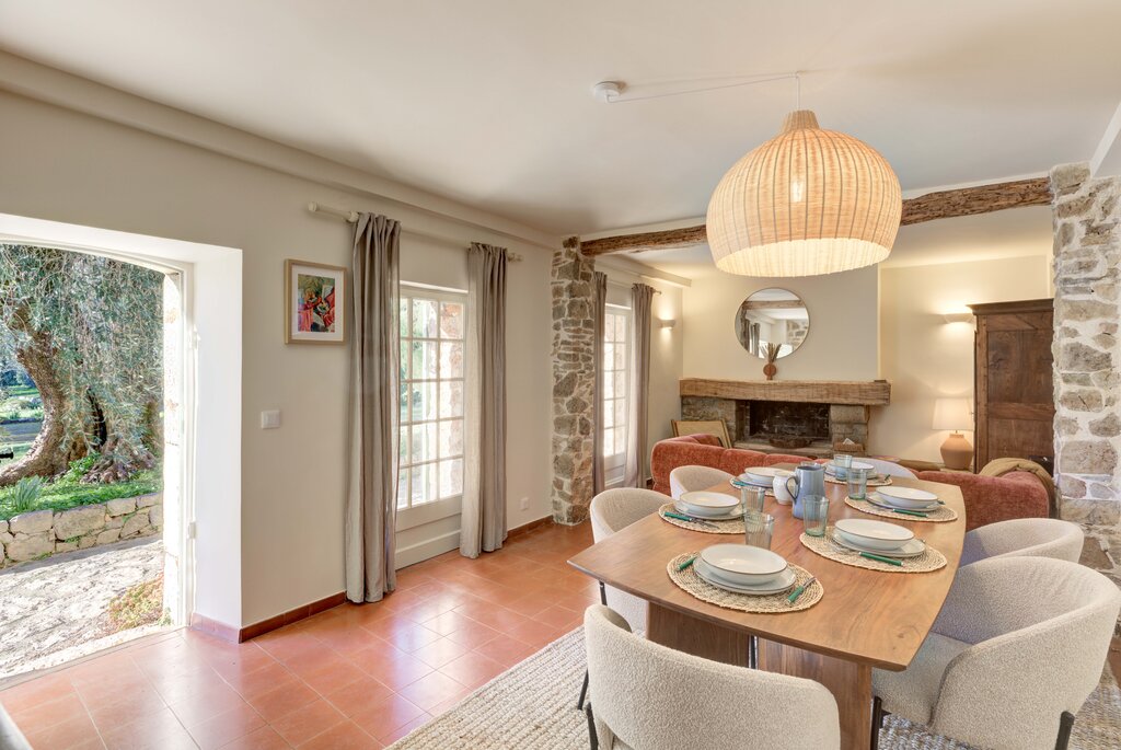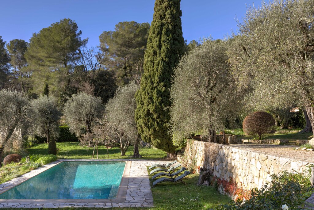 Surrounded by olive trees and drenched in Provençal charm, this 19th-century three-bedroom villa near Cannes boasts a lovely pool area, fragrant gardens, and effortless access to Riviera towns.