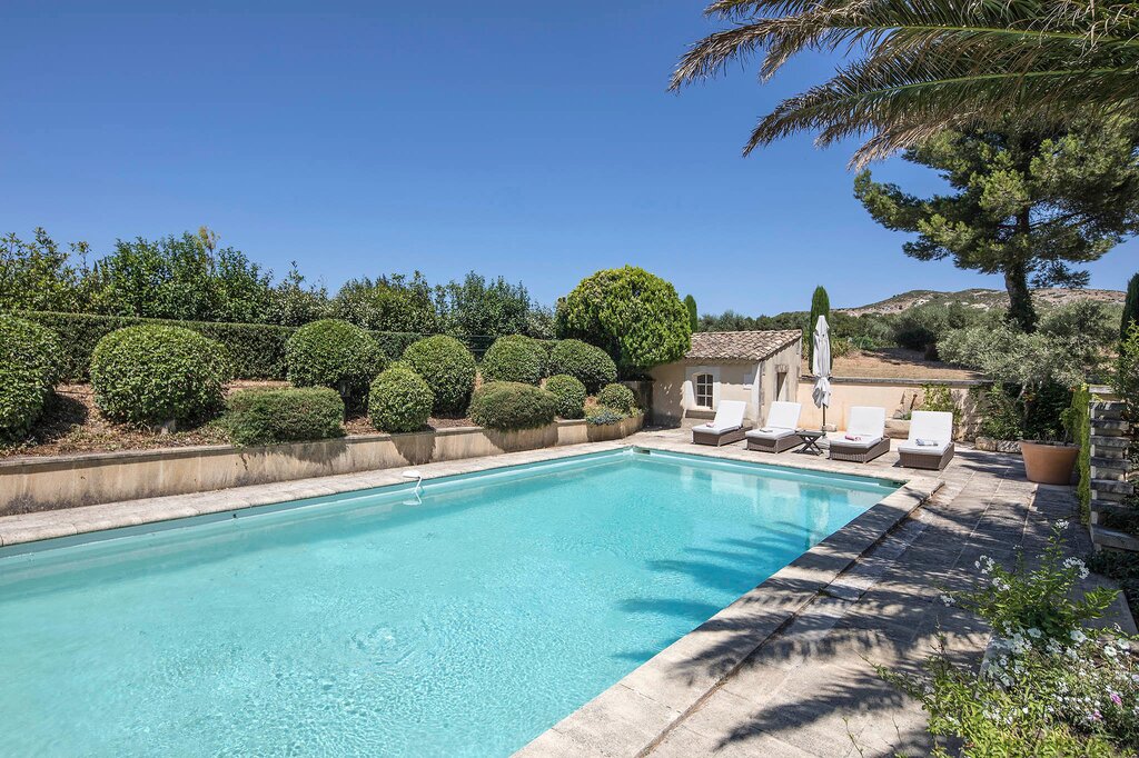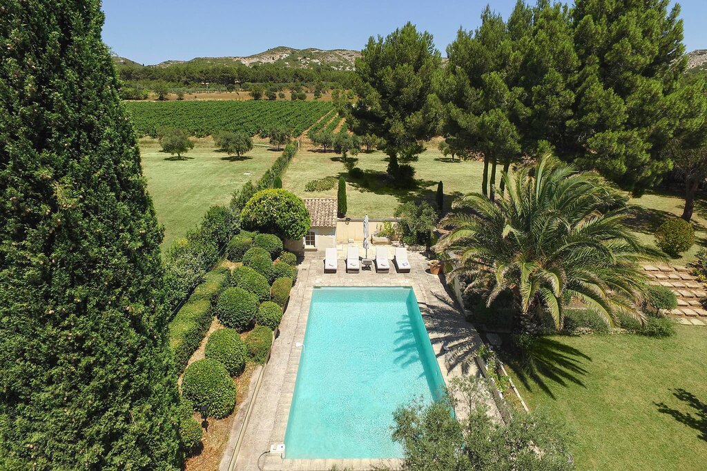 Nestled in the breathtaking Alpilles mountains near the charming village of Mouriès, this beautifully restored 18th-century farmhouse offers an authentic Provençal escape that masterfully blends rustic character with contemporary comfort.