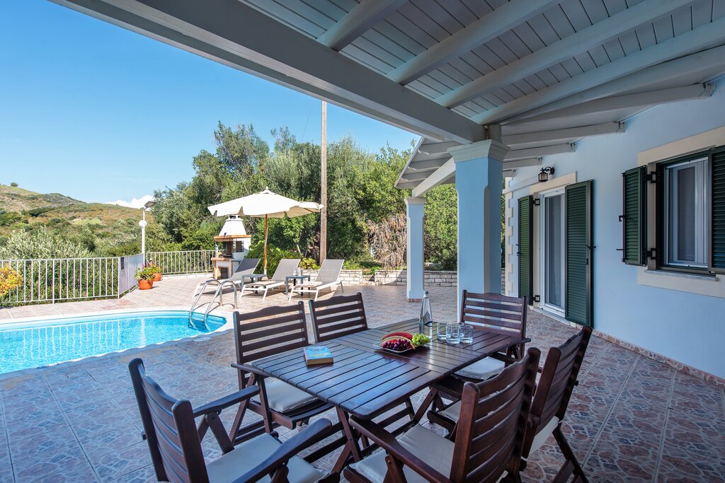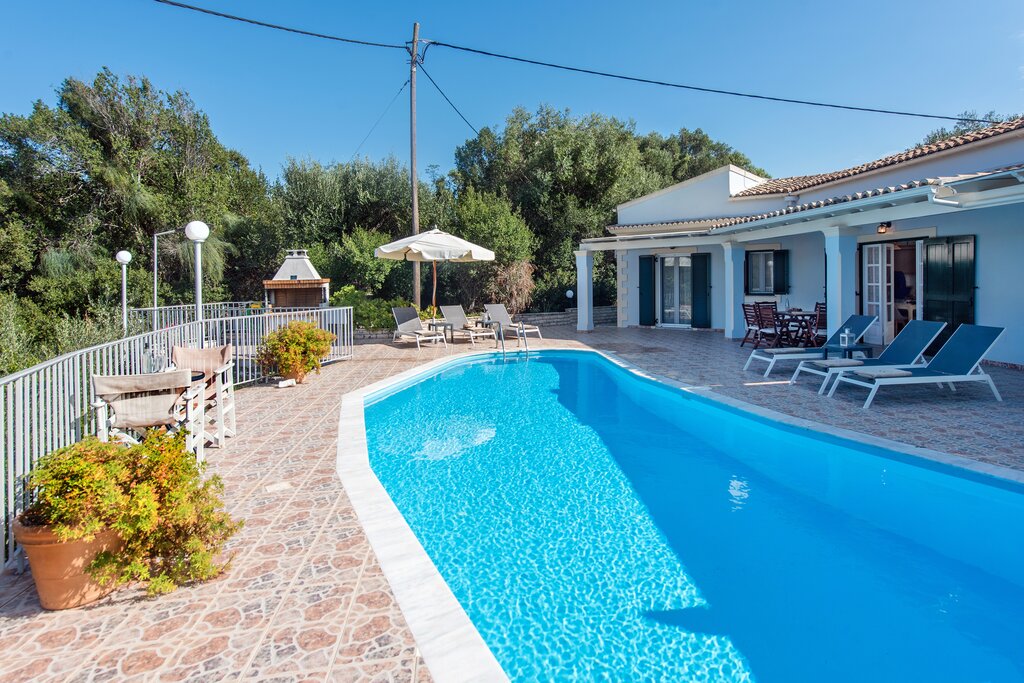 Surrounded by a natural screen of silvered olive trees, and gazing down to St Stephano harbour, a short stroll away, this family villa in Corfu is cool, calm, comfortable and convenient.