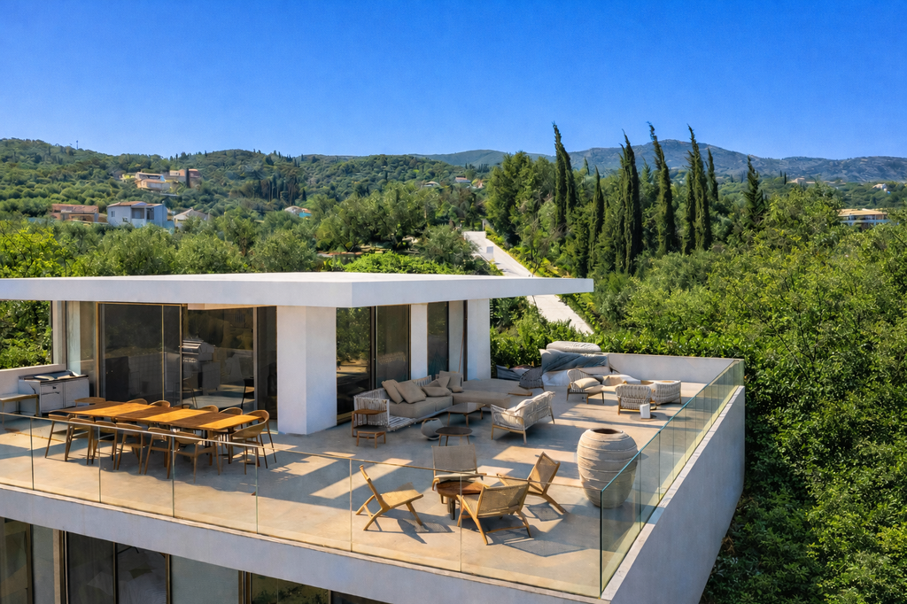 A sleek, sea-facing sanctuary above Kassiopi, Villa Nessya pairs far-reaching coastal panoramas with superb entertaining spaces, offering privacy and effortless comfort for large groups.