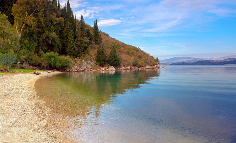 Kalami, Kouloura, and Yialiskari are among the prettiest villages on Corfu’s north-east coast. Their collective character attracted writer Lawrence Durrell to the area before World War II. In Kalami you can eat and sleep in the White House, where Durrell and his wife settled, and view memorabilia and cuttings about the man. Kouloura, in the next bay, has a nautical feel, the oldest harbour on that coast, dating from Byzantine times, and is protected by a stone wall. Yialiskari holidays are usually spent on the village’s sandy beach; it is sheltered by impressive rocks that plunge straight into the sea.