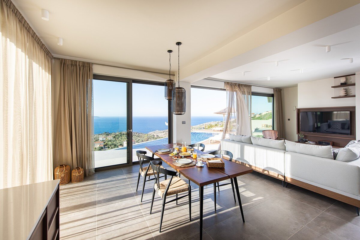 Boasting magnificent sea views and a fantastic outdoor dining space, Villa Mila is a modern and chic property elevated on a Cretan hillside.
