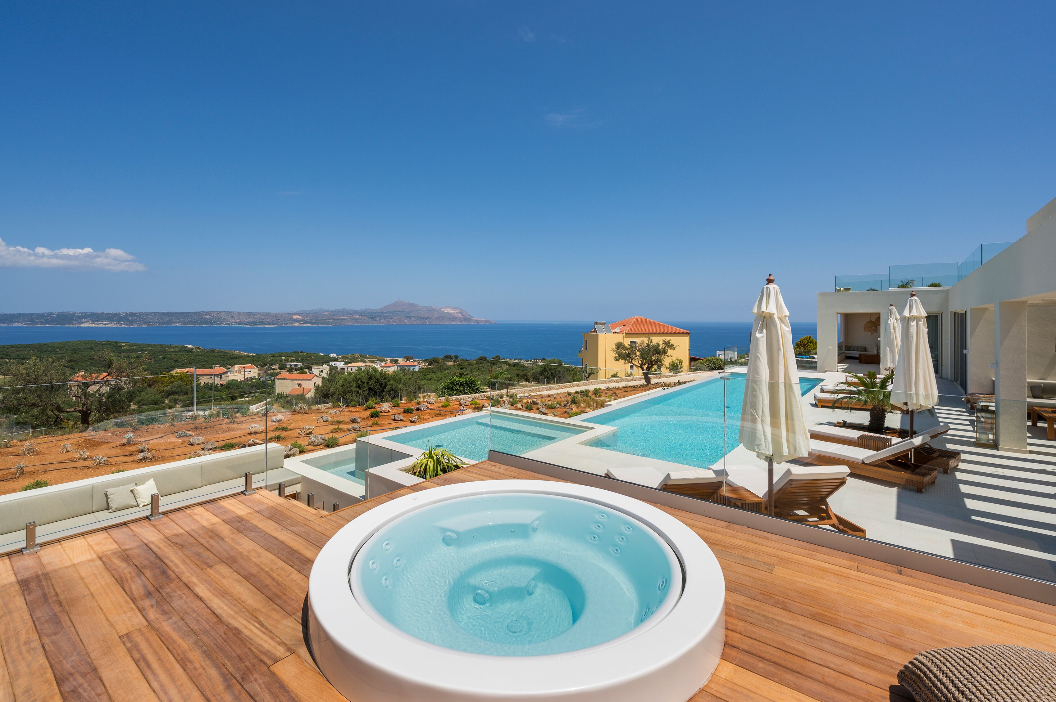 With two heated pools, a Jacuzzi, indoor cinema and stunning sea views, Villa Rhea is designed for an indulgent and relaxed escape on Crete's coastline.