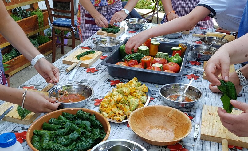 Learn to cook like a local in a family home set between the Aegean Sea and the mountains. Warmly welcomed by your hosts, you’ll start by harvesting vegetables from the garden before getting down to cooking authentic Cretan recipes. As you work, you’ll be taken on a cultural journey, hearing the stories behind each dish and tasting fresh local ingredients. You’ll then sit down to the meal that you helped to prepare, with a tasting of local wines.