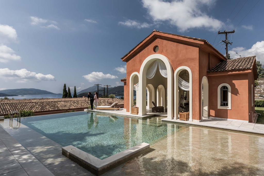 Villa Venecia boasts incredible panoramic views of the surrounding region from its romantic hillside location, with the islands of Meganissi and Skorpios both visible out on the horizon...