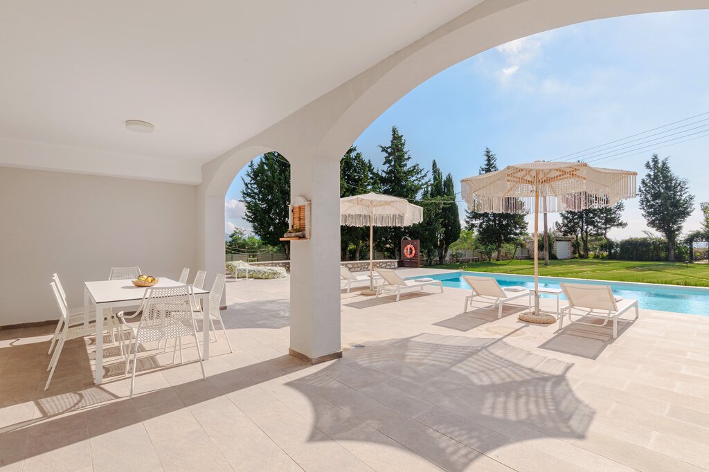 Colourful, contemporary and stylish throughout, this two-floor villa generously sleeps 8 and has its own private pathway to a lovely sandy beach.