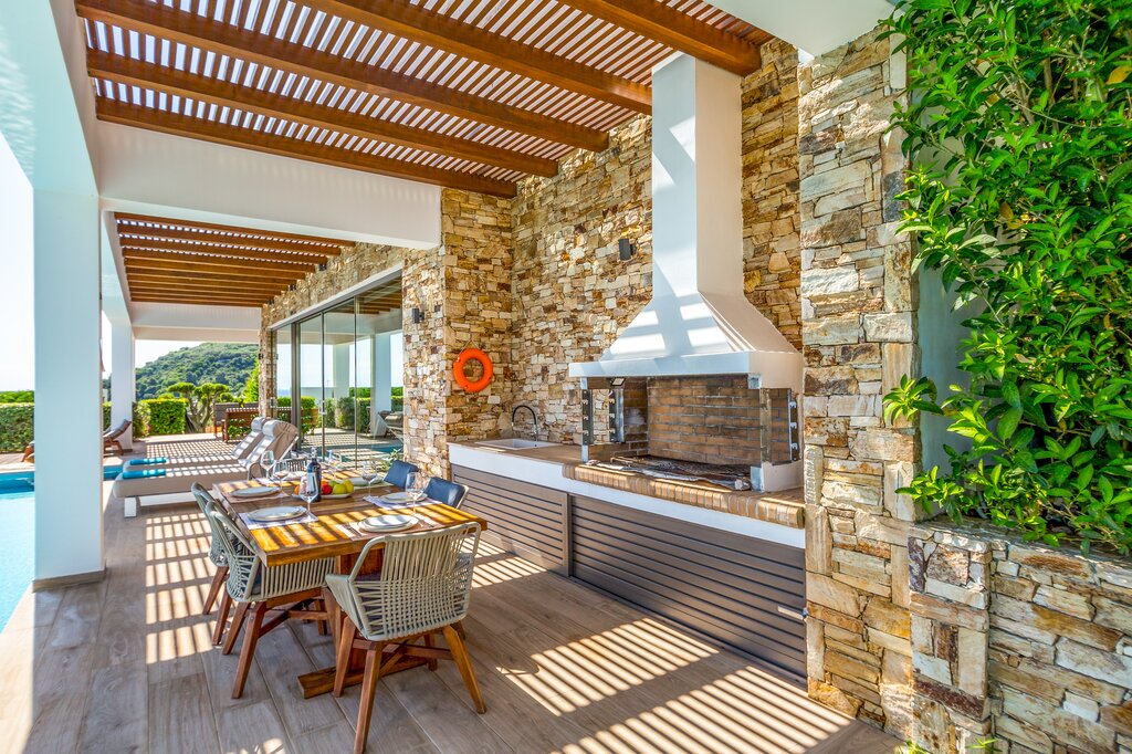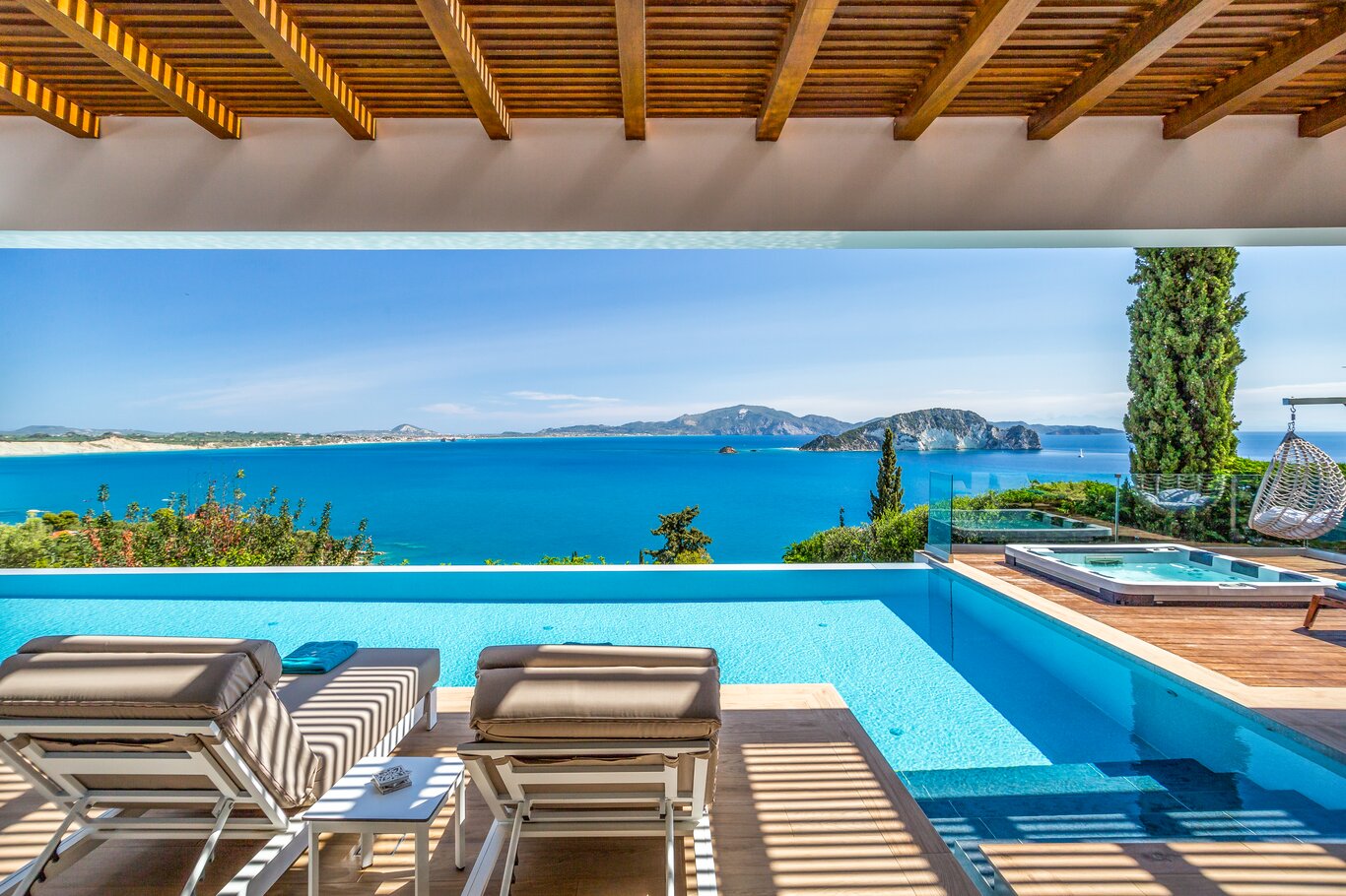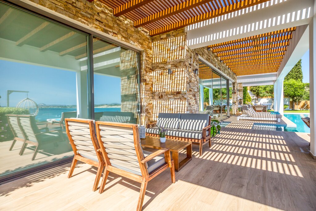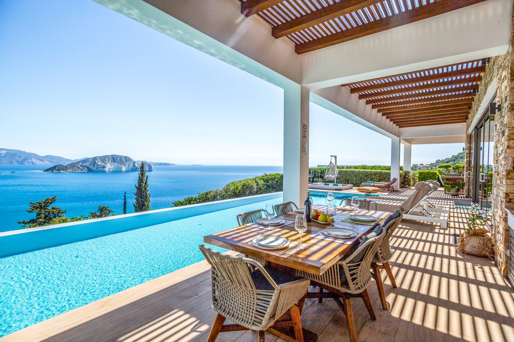 Set into the hillside above the coast of Zakynthos, Villa Luminia enjoys far-reaching views across the Ionian Sea, with a setting that feels both peaceful and well connected. From its elevated position, the villa looks out over the coastline and surrounding greenery, while the infinity pool and terrace make the most of the scenery throughout the day.
