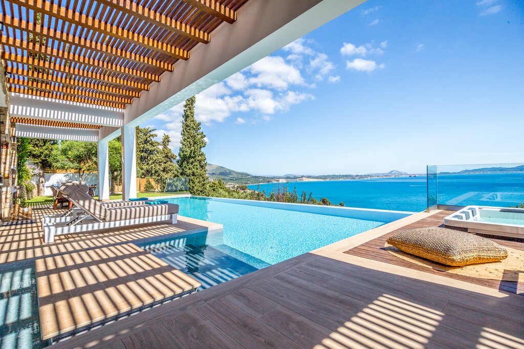A vibrant and contemporary villa in Zakynthos with sweeping coastal views, an infinity pool and walking distance from nearby beaches and tavernas.
