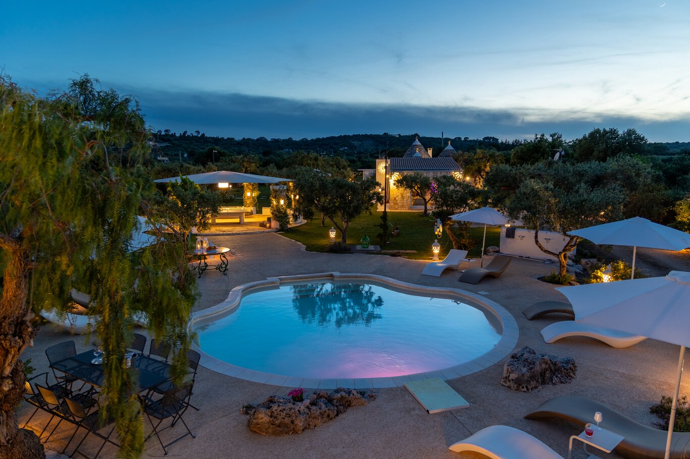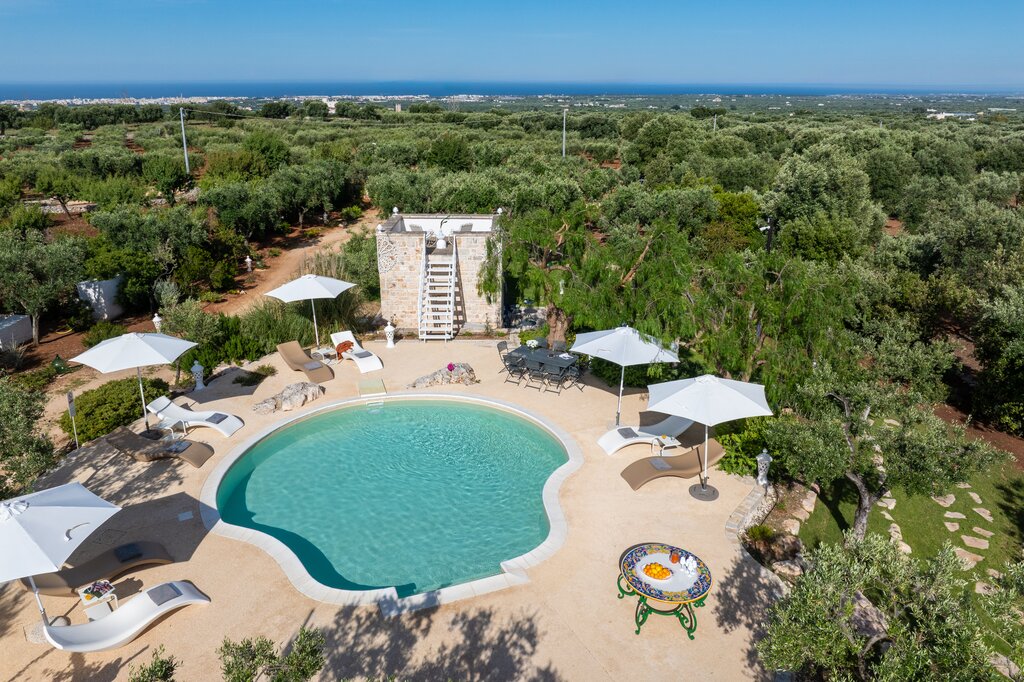 Nestled in the heart of Puglia’s countryside, Trulli Oliveto is a charming blend of traditional architecture and modern comfort. Surrounded by expansive lawns and centuries-old olive trees, this beautifully restored trulli complex offers an authentic yet stylish escape for up to ten guests.