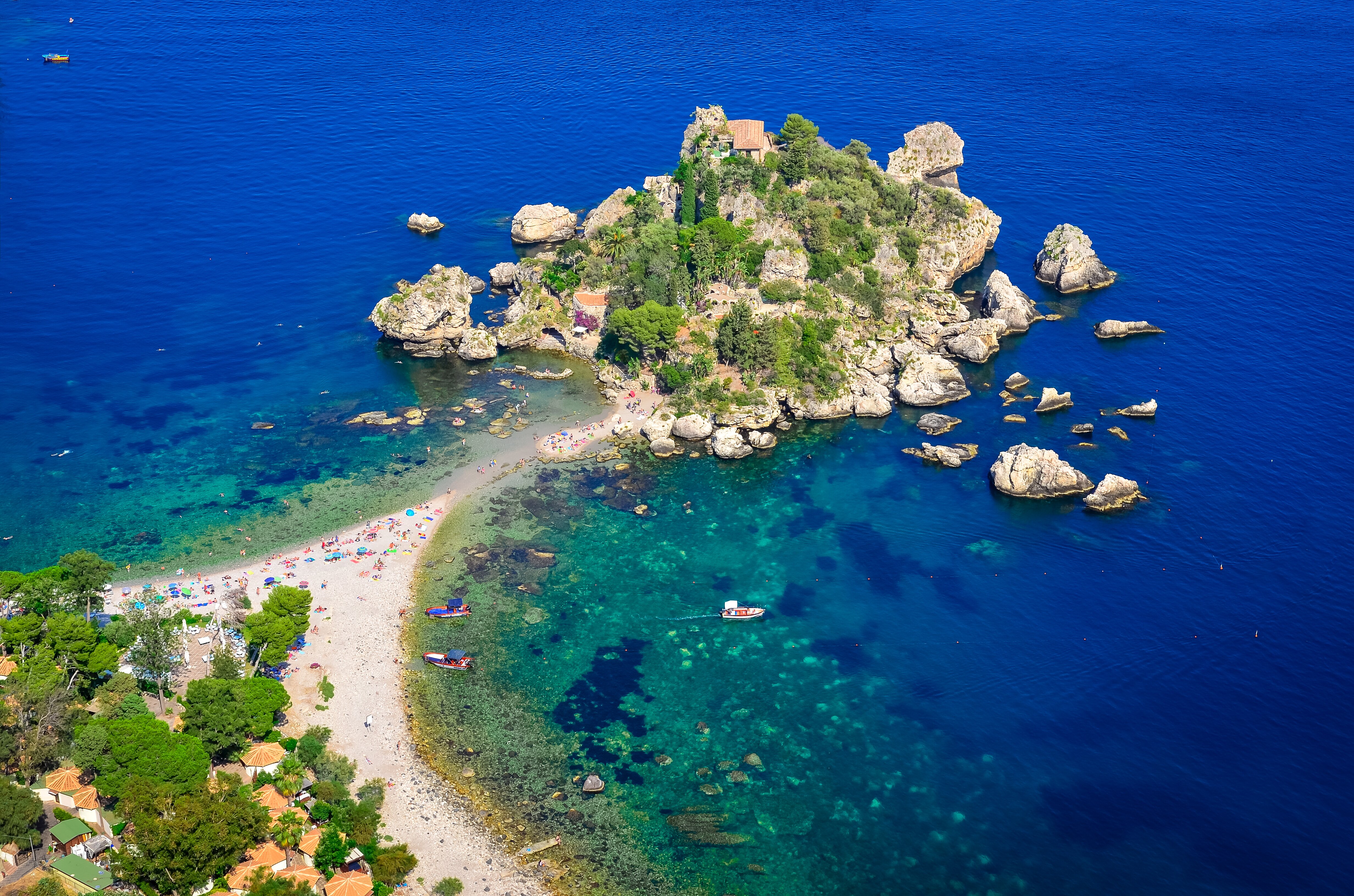 Isola Bella, a tiny island just off Taormina, is known as the Pearl of the Ionian Sea. You can choose to walk there across the narrow path or rent a small boat from Mazzarò. The beautiful and popular pebbly beach is ideal for sunbathers and is accessible by cable car from the town. The predominantly white sandy beach in Giardini Naxos is perfect for water sports, restaurants and beach bars. Aci Trezza is a quieter spot near Catania which has a few bars on the waterfront during summer.