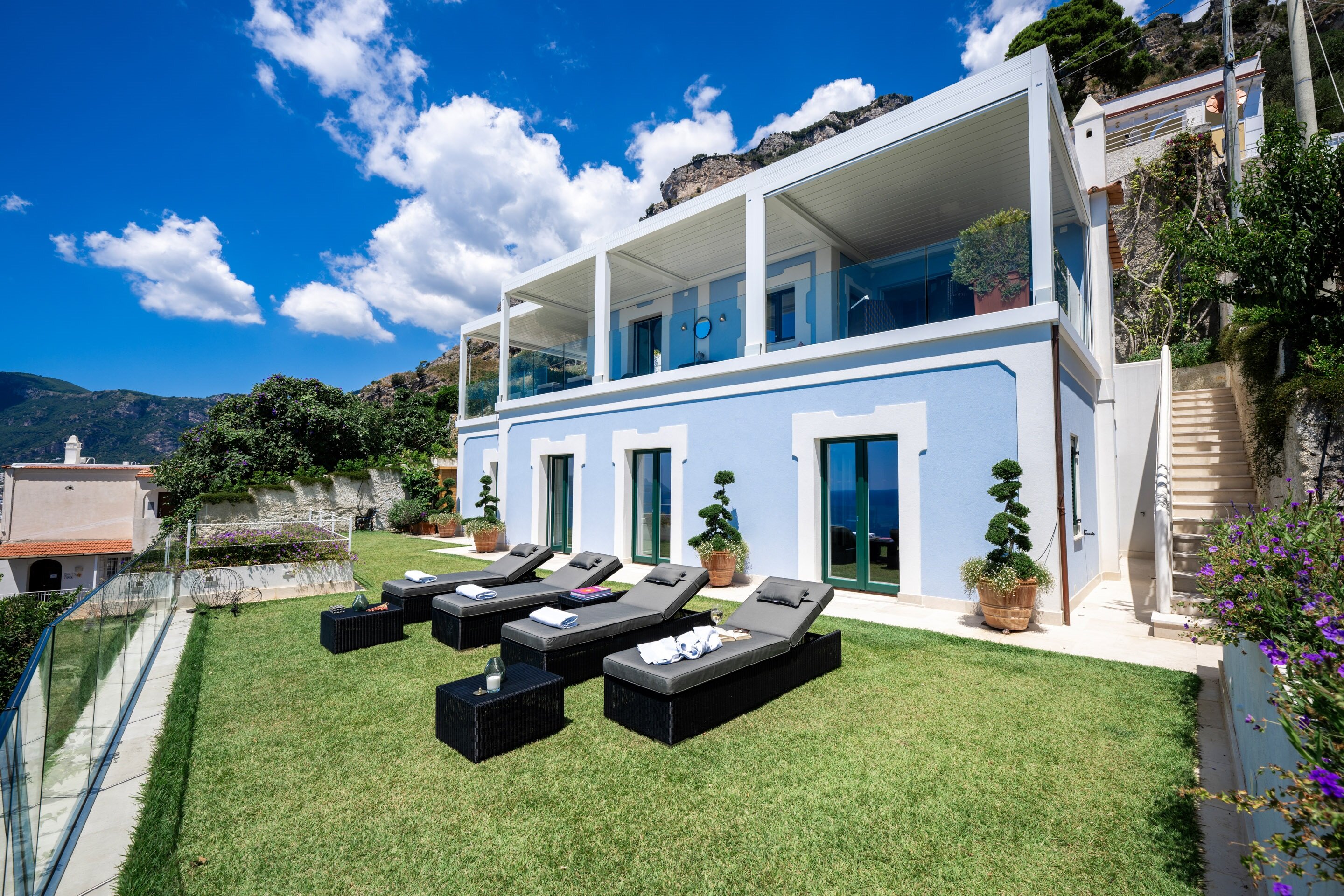 Situated along the famous Amalfi Coast, Villa Bluemarine is a stylish four-bedroom retreat with extraordinary views of the Tyrrhenian Sea, perfect for families or small groups.