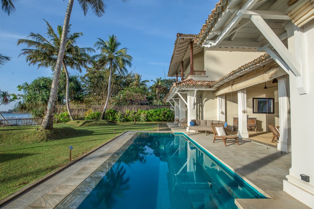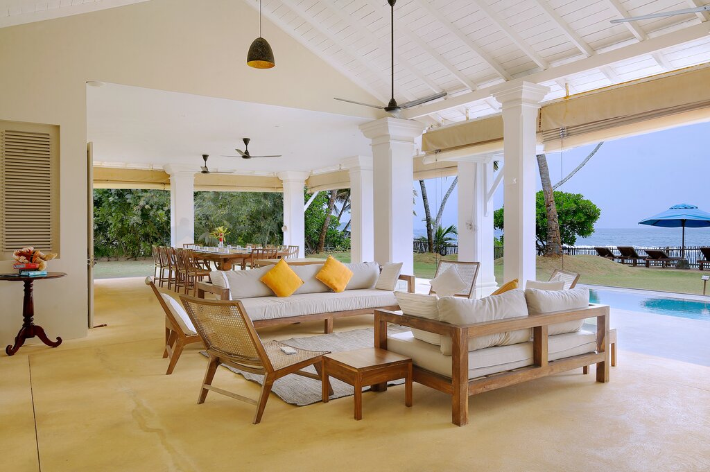 Sapphire is a six bedroom beachfront villa tucked into a quiet, palm‑lined bay on Sri Lanka’s south coast. The garden runs straight down to the sand and the sea is always in view.