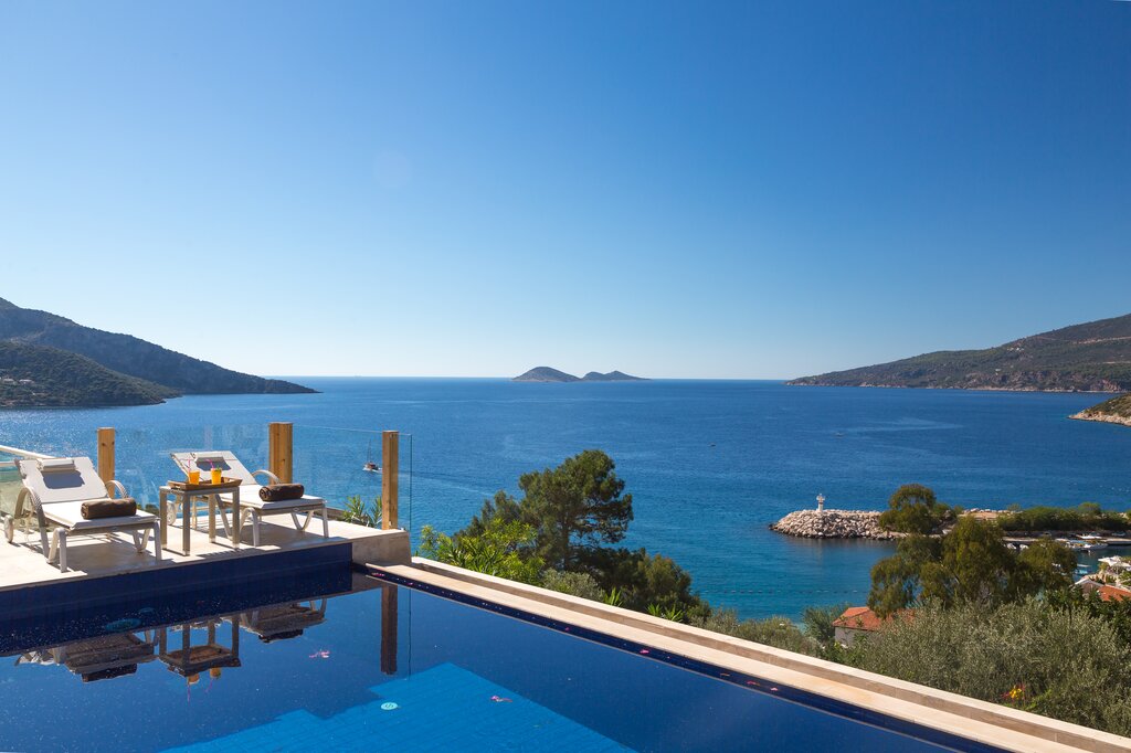 Seriously spacious sun terraces drink in uninterrupted views of the Med at this sleek stone-built property on the edge of Kalkan’s charming old town.